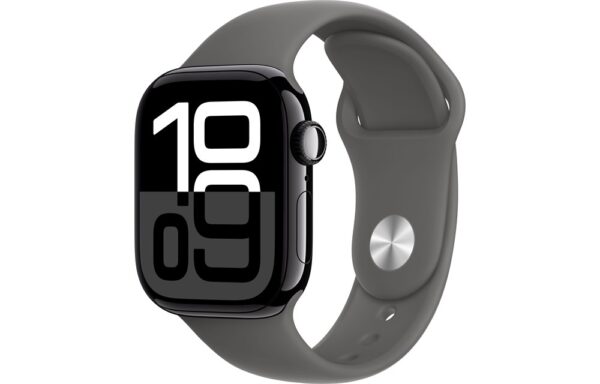 Apple Watch Series 10, 46 мм, Jet Black, Алюминиевый корпус с Stone Gray Sport Band — M/L (160-210мм)