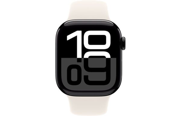 Apple Watch Series 10, 42 мм, Jet Black, Алюминиевый корпус с Starlight Sport Band — M/L (150-200мм)