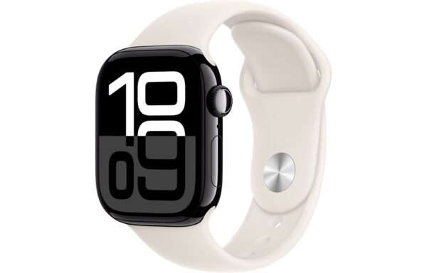 Apple Watch Series 10, 42 мм, Jet Black, Алюминиевый корпус с Starlight Sport Band — S/M (130-180мм)