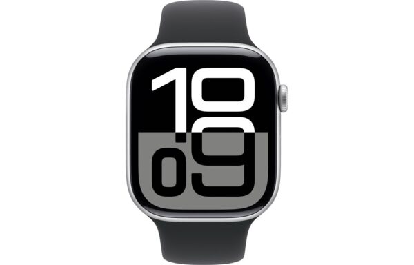 Apple Watch Series 10, 46 мм, Silver, Алюминиевый корпус с Black Sport Band — M/L (160-210мм)