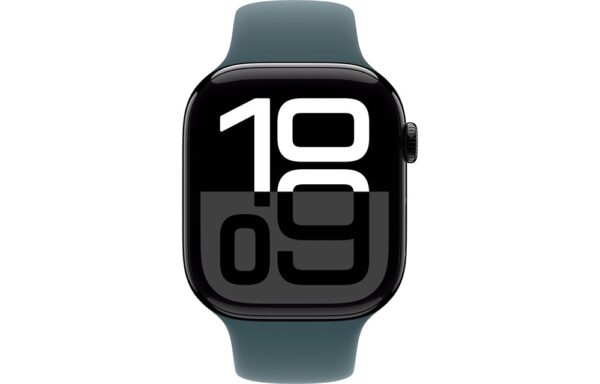 Apple Watch Series 10, 46 мм, Jet Black, Алюминиевый корпус с Lake Green Sport Band — M/L (160-210мм)