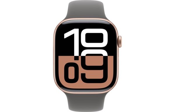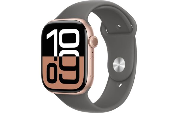 Apple Watch Series 10, 46 мм, Gold, Алюминиевый корпус с Stone Gray Sport Band — M/L (160-210мм)