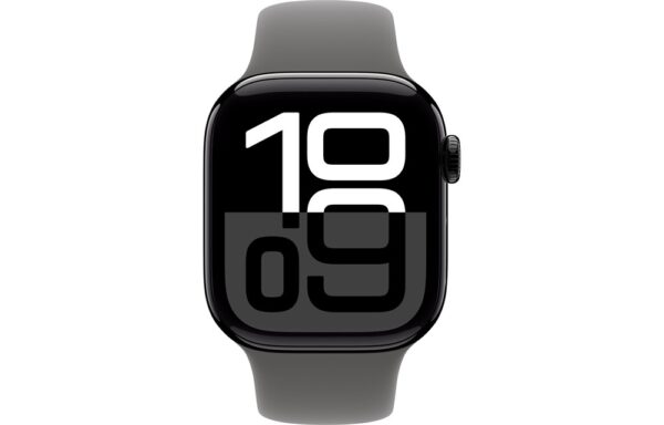 Apple Watch Series 10, 42 мм, Jet Black, Алюминиевый корпус с Stone Gray Sport Band — M/L (150-200мм)