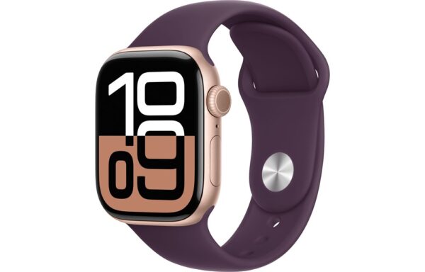 Apple Watch Series 10, 46 мм, Gold, Алюминиевый корпус с Plum Sport Band — M/L (160-210мм)