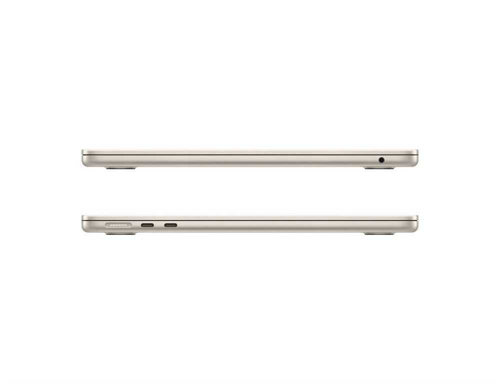 MacBook Air стал ещё компактнее и теперь доступен в четырёх великолепных цветах — с подходящим по цвету кабелем MagSafe для зарядки. Вес: 1.24 кг, Толщина: 1,13 см. Доступные цвета: «Тёмная ночь», Серебристый, «Сияющая звезда», Серый космос.