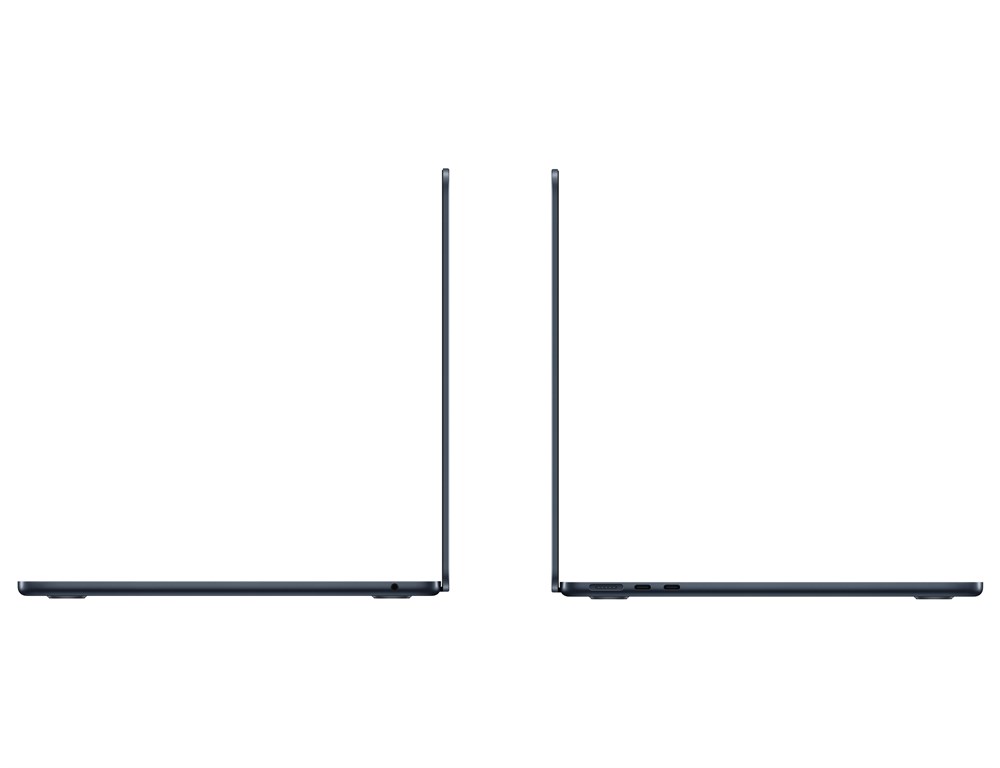 MacBook Air стал ещё компактнее и теперь доступен в четырёх великолепных цветах — с подходящим по цвету кабелем MagSafe для зарядки. Вес: 1.24 кг, Толщина: 1,13 см. Доступные цвета: «Тёмная ночь», Серебристый, «Сияющая звезда», Серый космос.
