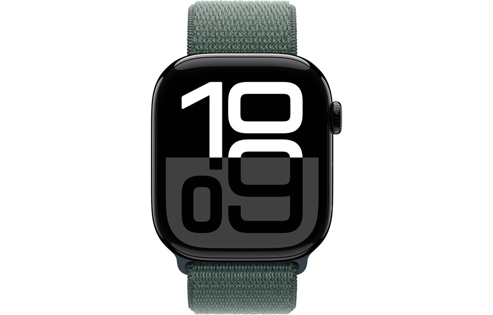 Watch Series 10, 42 мм, Jet Black, Алюминиевый корпус с Lake Green Sport Loop.
