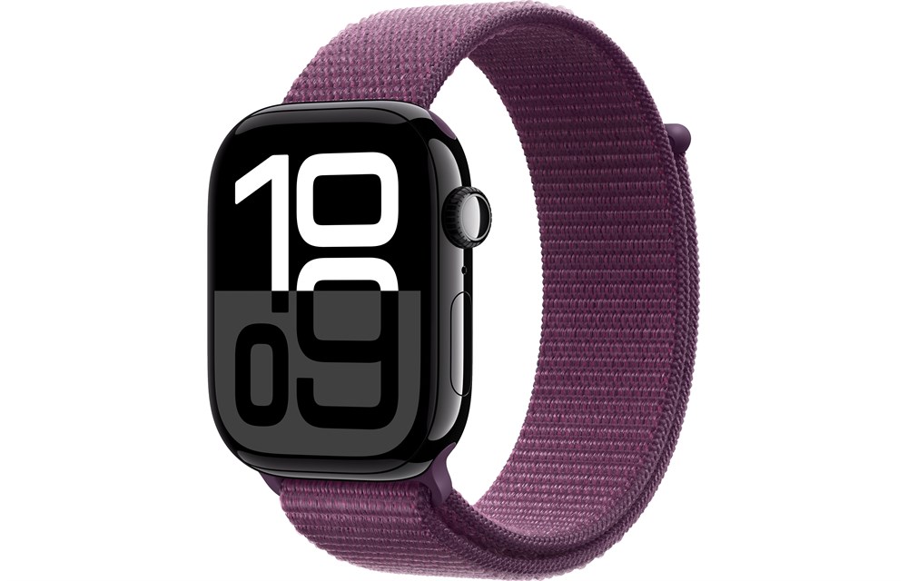 Watch Series 10, 42 мм, Jet Black, Алюминиевый корпус с Plum Sport Loop.
