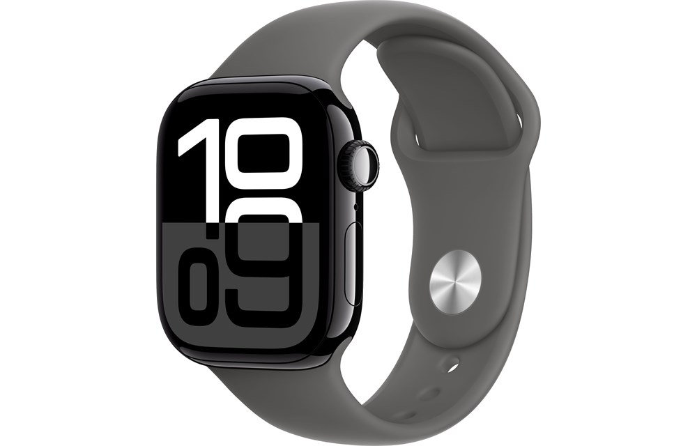 Apple Watch Series 10, 42 мм, Jet Black, Алюминиевый корпус с Stone Gray Sport Band — M/L (150-200мм)