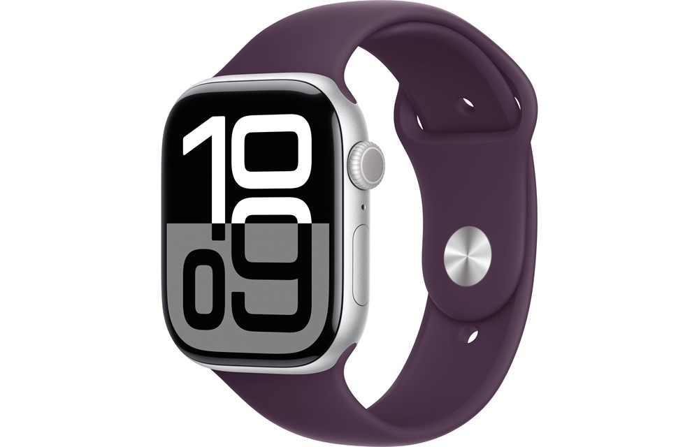 Apple Watch Series 10, 46 мм, Silver, Алюминиевый корпус с Plum Sport Band — S/M (140-190мм)
