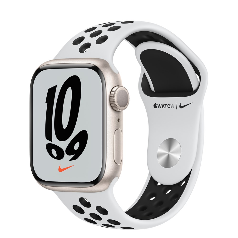 Watch Series 7 41mm, корпус из алюминия в цвете Starlight (Сияющая звезда), Спортивный ремешок Nike MKN33**/A