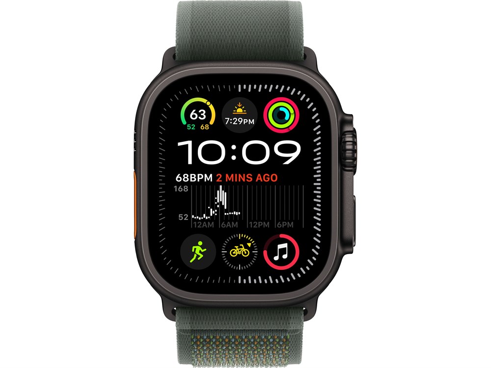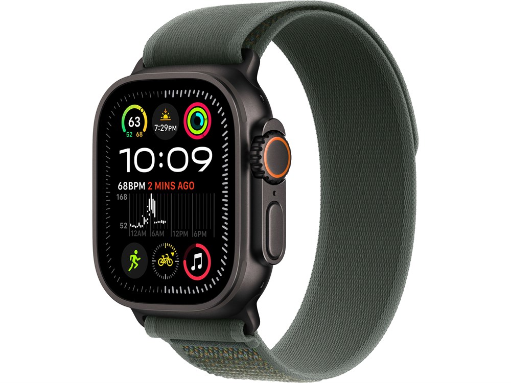 Watch Ultra 2, 49 мм, Чёрный Титан корпус c Green Trail Loop ремешком — M/L (145-220 мм)