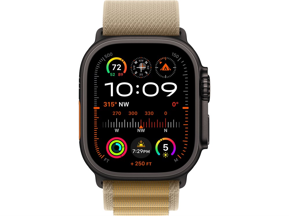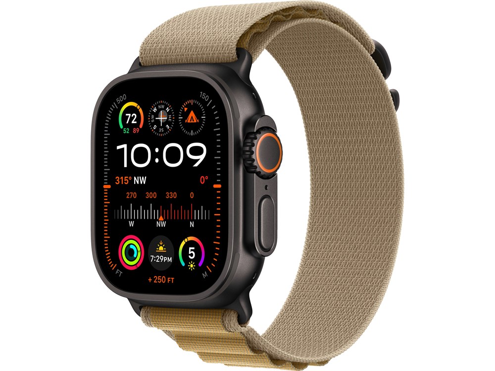Watch Ultra 2, 49 мм, Чёрный Титан корпус c Tan Alpine Loop ремешком — S (130-160 мм)